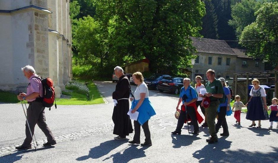 Die heurige Fußwallfahrt nach Pernegg stand unter dem Motto "Von Maria - zu Maria". Zum 3. Mal ausgehend vom 2016 errichteten Marien-Bildstock beim Murkraftwerk in Peugen begleiteten 11 Pilger Pater Simon zu Fuß zur Wallfahrt über den Murradweg 2 in Richtung Norden. Nach einer kurzen Andacht beim neuen Bildstock um 6 Uhr früh folgten bei herrlichem Frühlingswetter weitere Gebete und Marienlieder bei der Feldgrill-Zuhube und der Kapelle in Mixnitz. Das Ziel, die Marien-Wallfahrtskirche in Pernegg, auch liebevoll "Frauenkirche" bzw. Wallfahrtskirche Klein-Mariazell genannt, wurde knapp vor 10 Uhr erreicht. Mit Glockengeläute und den vor der Kirche wartenden Gläubigen aus Frohnleiten wurden die tapferen Pilger betend zur Gnadenmutter von Pernegg geleitet. Pater Simon zelebrierte dann dort die Wallfahrermesse. Die Heimreise erfolgte hernach mit Privat-PKWs.
