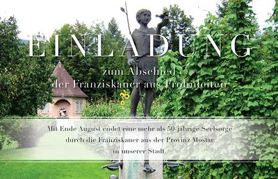 Einladung zum Abschied der Franziskaner aus Frohnleiten vom 23.8. - 26.8.2018