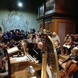 Als Hauptwerk des Adventkonzerts stand das stimmungsvolle Weihnachtsoratorium von Camille Saint-Saens am Programm, das wegen seiner besonderen Besetzung auf der Orgelempore musiziert wurde: Fünf Solisten und der Chor tragen darin die Weihnachtsgeschichte in lateinischer Sprache vor, begleitet von der großen Orgel, einer Harfe und Streichorchester. Zur besinnlichen Einstimmung auf die Adventzeit sang der Chor davor am Hochaltar A-Cappella-Motetten von Johannes Brahms, Benjamin Britten und Morten Lauridsen.