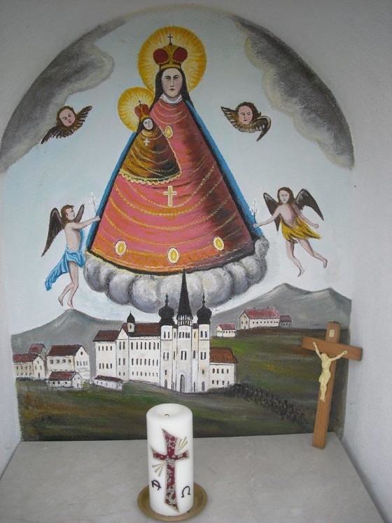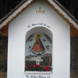 Das Andachtsbild zeigt die gekrönte Mariazeller Madonna mit dem ebenfalls gekrönten Jesuskind auf ihrem rechten Arm, künstlerisch gestaltet vom bekannten Maler Franz Kainz vlg. Tranninger aus der Gams. Als Vorlage verwendete er ein Bild, das der ehemalige Landeskonservator und Nachbar Hofrat DI Dr. Friedrich Bouvier beisteuerte. Die feierliche Einweihung erfolgte am 21. Oktober 2012, demAdriacher Kirchweihfestsonntag, durch den Übelbacher Pfarrer Dr. Horst Hüttl unter großer Anteilnahme von Familie, Verwandten, Nachbarn und Bekannten sowie mit festlicher Hausmusik.