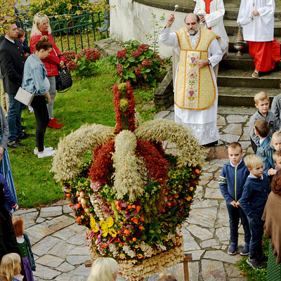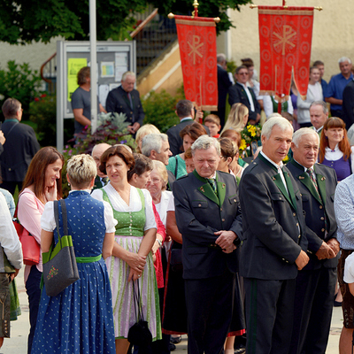 Erstkommunion, Firmung, Fronleichnam erhalten durch die An­wesenheit und Mit­wirkung von Vereinen besonderen Feier-Status: Da spielt dann die Marktmusik­kapelle am Kirch­platz auf, da werden in der Agape Brot und Wein gereicht, da beginnen die Kinder in der Park­anlage um den Pfarrhof zu spielen. – Schade nur, dass der Herr Pfarrer sich dem fröh­lichen Feiern bald ent­ziehen muss, weil er zur Sonntags­messe in die nächste Pfarr­verbands­pfarrkirche gerufen wird.