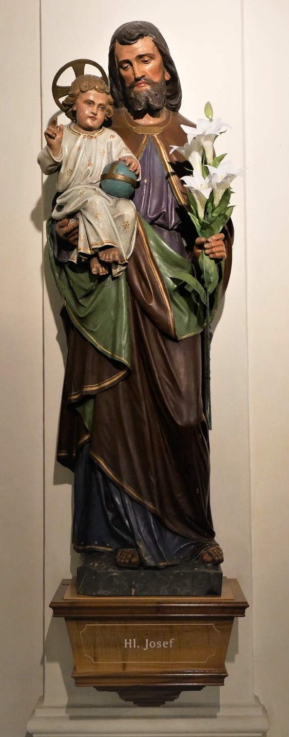 Die Figuren der hl. Joseph und Antonius von Padua stammen von Hans Gschiel und entstanden wie die Franziskusstatue am Anfang des 20. Jahrhunderts. Die jüngste Skulptur im südlichen Seitenschiff zeigt den Ordensheiligen Maximilian Kolbe, der während des NS-Regimes inhaftiert wurde und 1941 im KZ Auschwitz den Märtyrertod starb. Die Künstlerin Aloisia Ulman schuf dieses Werk im Jahre 1983.
