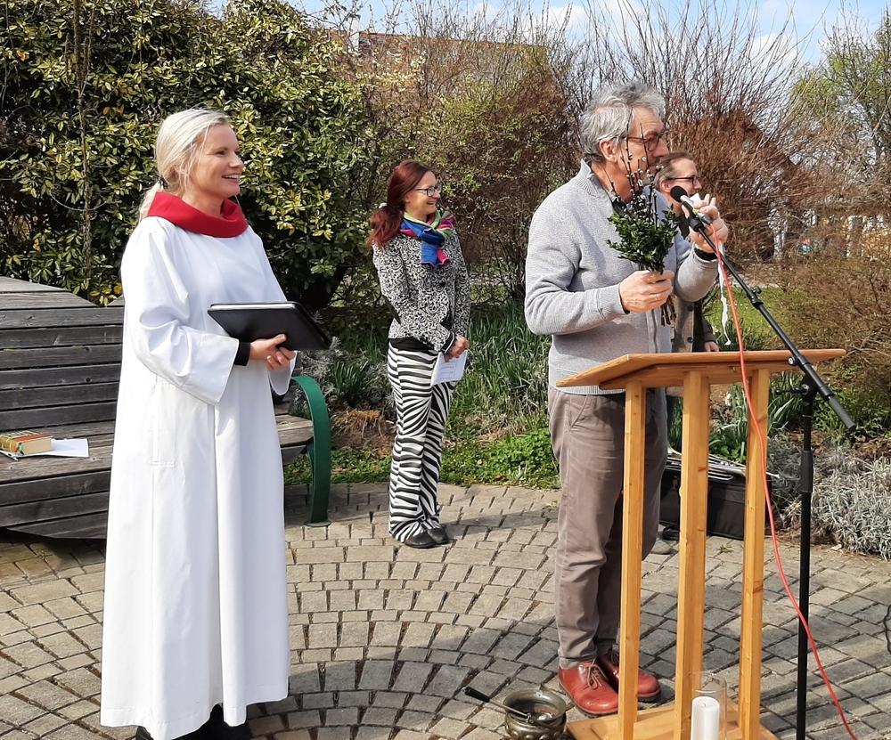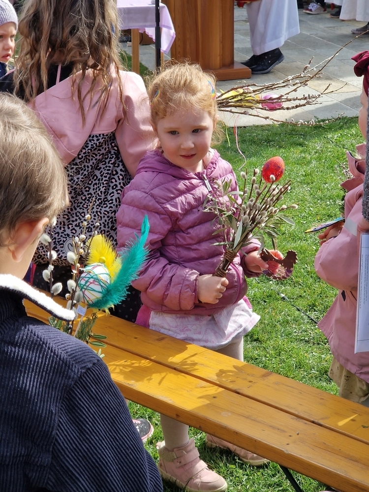 Diakon Franz Habith gestaltete um 11 Uhr in der Kaiserwald-Kapelle die Palmsegnung und Pastoralreferentin Ines Kvar leitete um 14:30 Uhr im Zettling-Park die Feier zur Segnung der Palmzweige.
