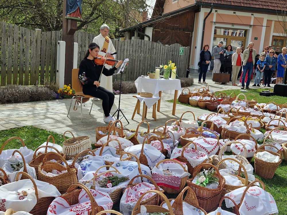 Ein Fixpunkt im Kirchenjahr ist für viele Christinnen und Christen die Osterspeisensegnung. Auch in unserer Pfarre kommen immer viele Menschen zu den einzelnen Stationen, so auch heuer wieder am Karsamstag.