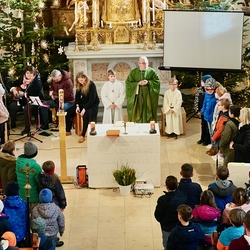 Um 10 Uhr schließlich feierten die Kinder in der Gemeinschaft der Pfarre mit Vikar Norbert Glaser und Diakon Michi Zepf die heilige Messe, gestalteten mit Texten die Feier mit und sangen begeistert ihre schönen Lieder. Ein Danke besonders an Frau Religionslehrerin Helga Krenn und das tolle Musikteam!
