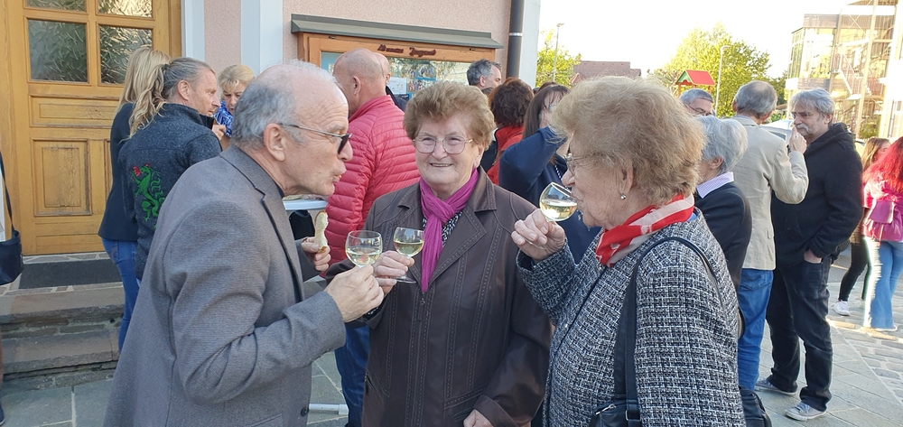 Bei der anschließenden Agape mit Brot und Wein auf dem Kirchplatz gab es dann für alle die Gelegenheit, persönlich mit Vikar Norbert Glaser auf seinen Geburtstag anzustoßen.